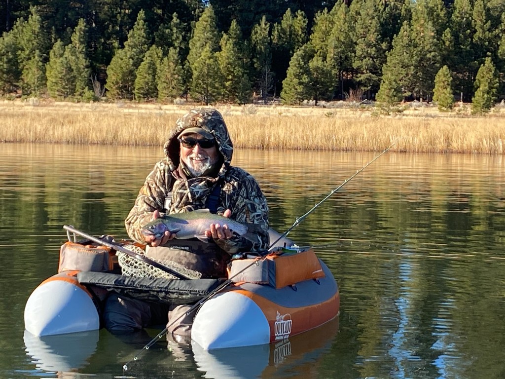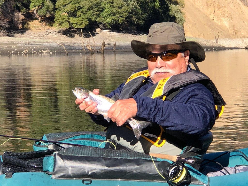 November 15, 2020. Freddy Farias, Wilson Taguinod, and Brendon Taguinod fished Los Padres Reservoir on the last day of the season and were not disappointed. Freddy (a newcomer to float tube fishing) started the day with a rainbow early in the morning. The fishing was not hot, but with perseverance the numbers added up. Freddy ended up with 4 up to 12″, Brendon had 10 to 16″, and Wilson had 13 to 14″. A good way to close the season. Here are a couple of photos: