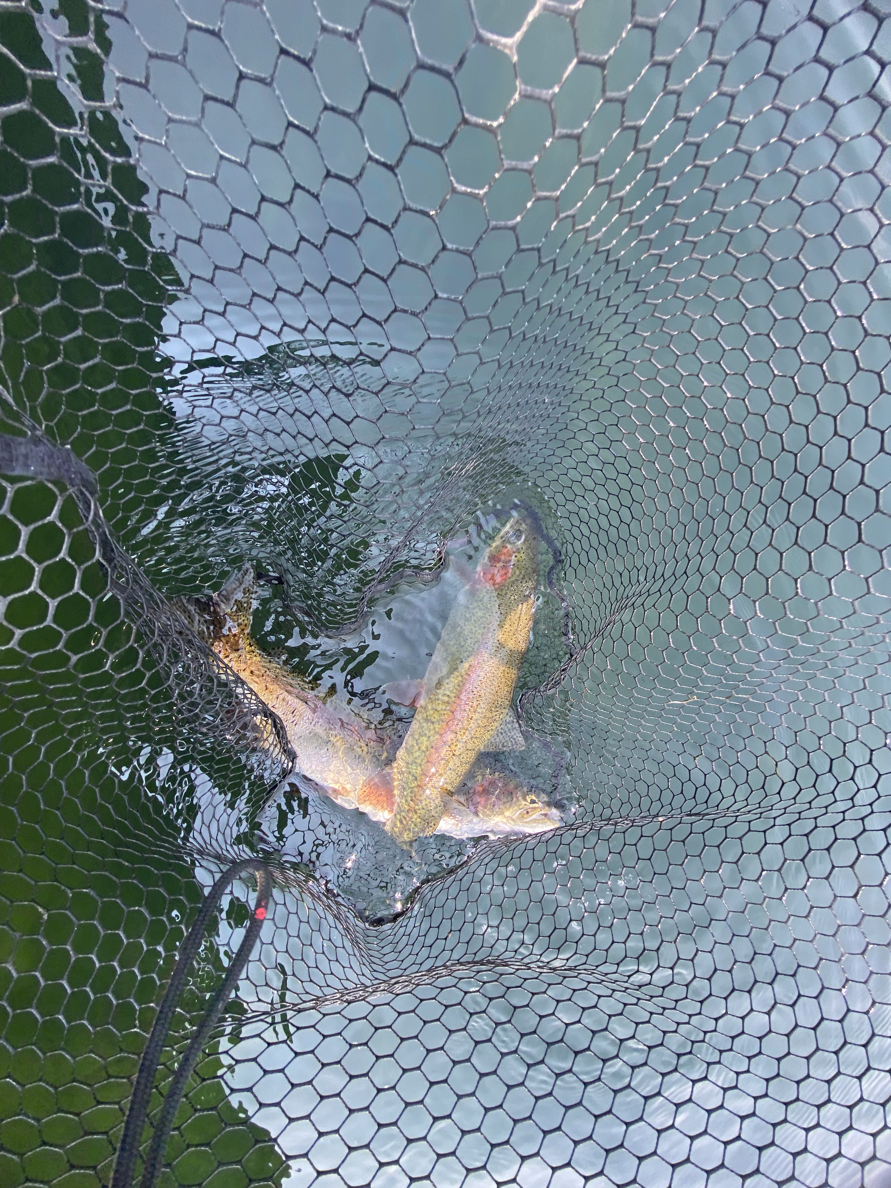 Fishing was slow but the quality was high. Wilson landed 7 nice rainbows from 17 to 21 inches and Brendon landed one 20+. Here are some photos of the pigs we caught: